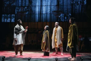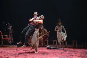 In hopes of ending this cycle of revenge, a storyteller is summoned to tell the tale of the Mahabharata; beginning with the rival Pandava and Kaurava clans, and the choices that lead to their infamous Game of Dice. Through playful narration, with live music, the Ensemble tells the stories of humans struggling to build a just world in the face of competition, jealousy,