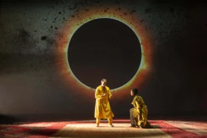The Life We Choose King Janamejaya is told of the war fought by his ancestors — its devastating destruction of the planet, the mass extinction that followed, and of the survivors left behind to rebuild. Using captivating projections, dynamic soundscapes, and poetic stage design, Part 2 includes a 15-minute Sanskrit opera adaptation of the Bhagavad Gita. King Janamejaya is confronted with the battle of Kurukshetra, and the battle inside his own heart.